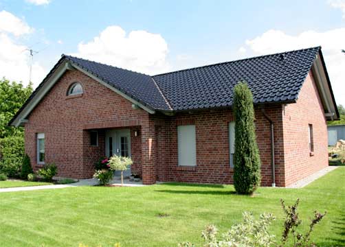 Bei diesem Wohnhaus bestand die Entwurfsaufgabe in einer Lösung die ein Leben auf einer Ebene ermöglicht, aber dennoch für die Zukunft flexiebel genug ist, um auf Änderungen der Bedürfnisse reagieren zu können. Die Lösung: Ein Bungalow mit Ausbaureserve im Dachgeschoss. Neben der dafür notwendigen massiven Decke kam eine zweischalige, verklinkerte Fassade mit Kerndämmung und Luftschicht, ein Ziegeldach und Kupferdachrinnen zum Einsatz. Das garantiert eine hohe Beständigkeit.